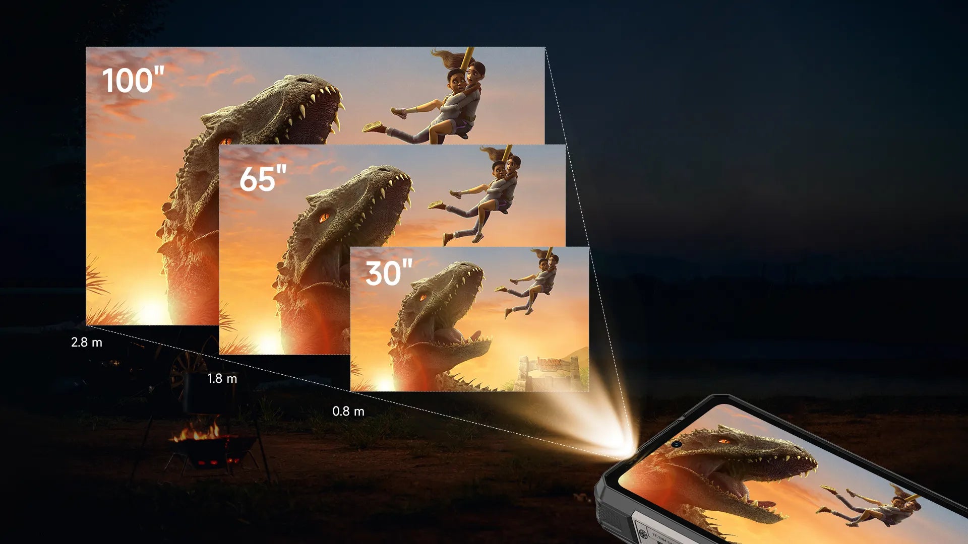 Встроенный DLP проектор яркостью 150 люмен превращает Ulefone Armor 34 Pro в настоящий портативный кинотеатр. Чёткая проекция на любой поверхности. Транслируйте фильмы, презентации, чертежи и фотографии на большом экране.
