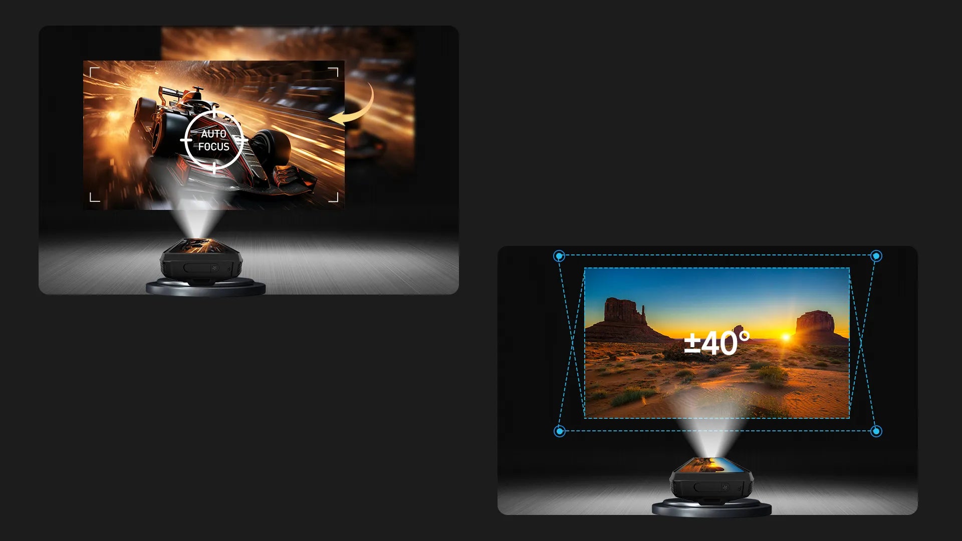 Чёткое, сфокусированное изображение проекции. Интеллектуальная автофокусировка мгновенно определяет расстояние, гарантируя, что контент всегда будет чётким и резким.